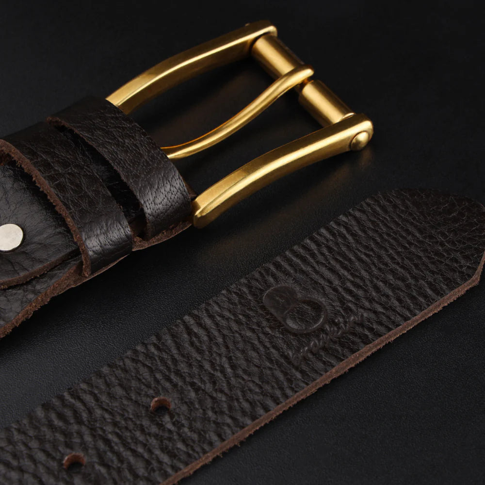 Experience timeless elegance with the 'Hazel Brown' belt, a refined addition to any men's accessory collection. Crafted from soft and supple 100% genuine Aniline Leather, this premium leather belt boasts a warm, rich hazel brown color with a subtle sheen, perfectly complemented by a sleek brass buckle. With its classic design, exceptional craftsmanship, and comfortable durability, this men's leather belt is a staple for years to come, ideal for pairing with formal attire, jeans pants, or casual wear. Whether you're looking for a high-quality leather belt to elevate your men's style or a durable accessory for everyday wear, the 'Hazel Brown' belt is a great choice, offering a perfect blend of fashion and function.